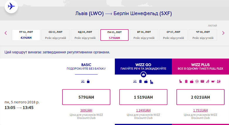 5 лютого члени Wizzair Discount Club можуть летіти зі Львова у Берлін за €10.