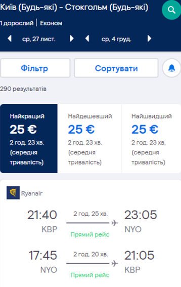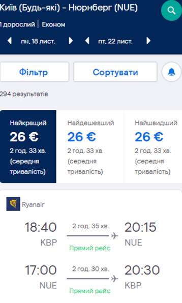 Дати – 18-22 листопада. Вартість квитків в обидва боки – €26.