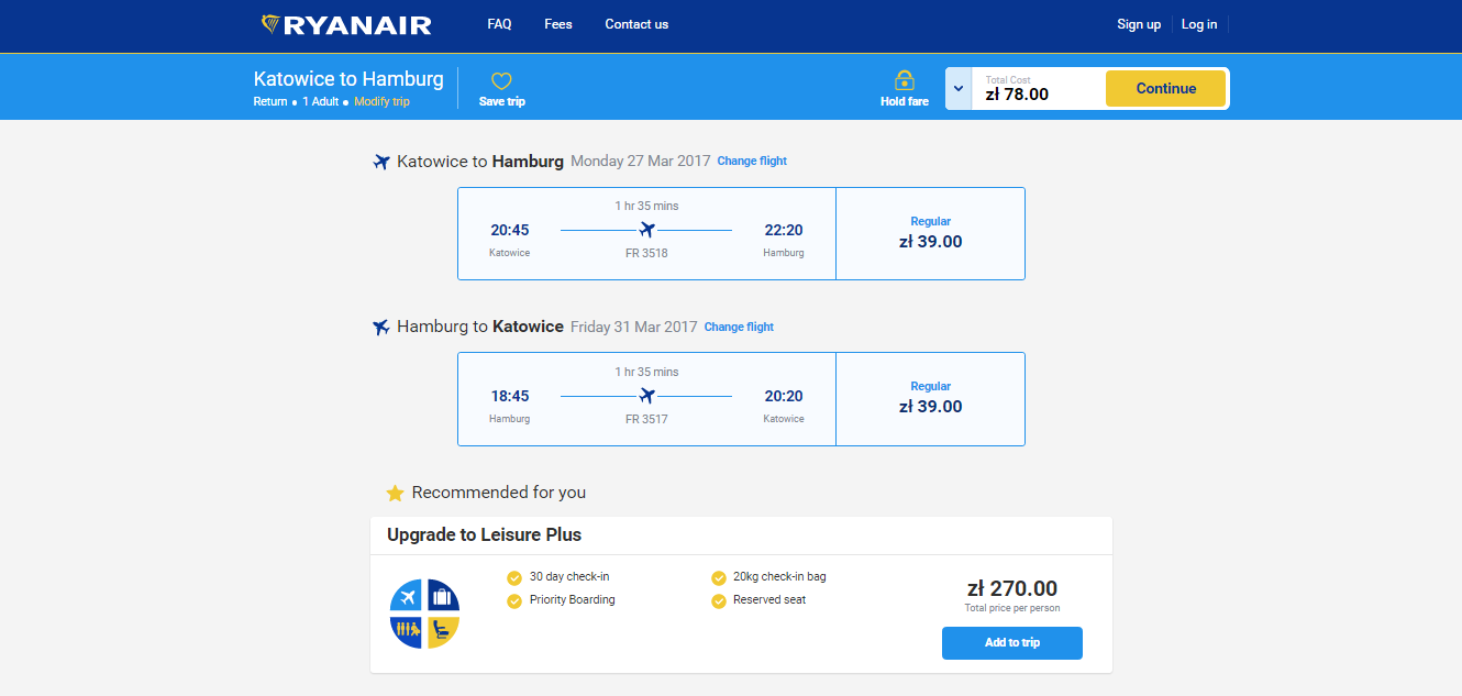 В этот же день вечером в 20:45 в аэропорту Катовице садимся на самолет в Гамбург. Прилетаем в Гамбург в 22:20. Рейс прямой, можно с собой взять ручную кладь, багаж в цену не входит. Стоимость билета на самолет €18 туда-обратно. Купить можно тут