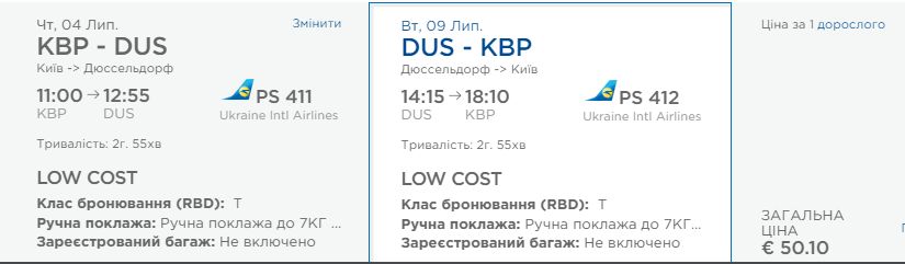 Київ – Дюссельдорф, 4-9 липня – 50 євро у два боки