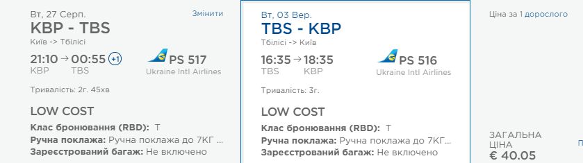 ДетальнішеКиїв – Тбілісі, 27 серпня-3 вересня – 40 євро у два боки