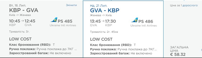 Київ – Женева, 16-21 липня- 58 євро у два боки