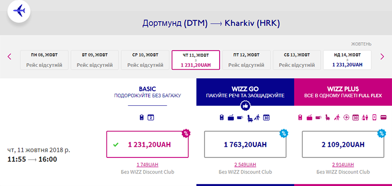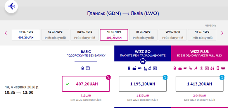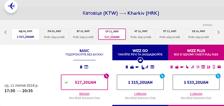 Даты – 4-11 июля. Участникам Wizz-клуба придется заплатить за билеты в обе стороны 1054 грн или €36, всем остальным придется заплатить €60 или 1738 грн.