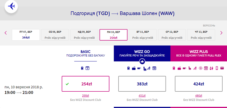 Путешествие в Подгорицу с вылетом из Варшавы можно запланировать на период 3-10 сентября. Стоимость билета туда-обратно – €92 (для участников Wizz-клуба) или €115 (для всех остальных).