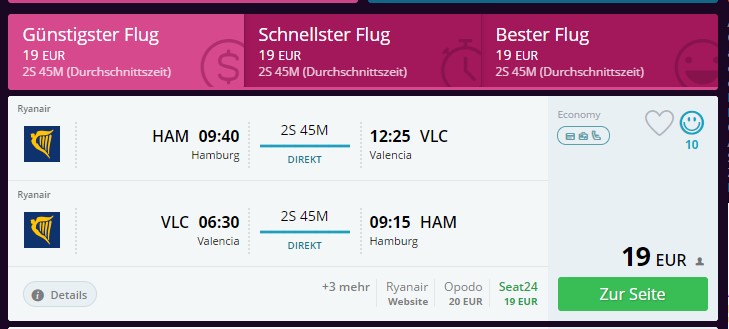 Гамбург-Валенсія 16-21 листопада – €19 в обидва боки.