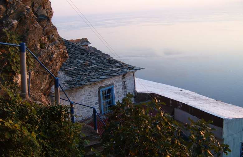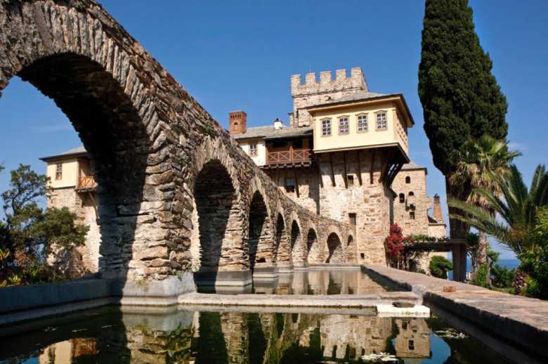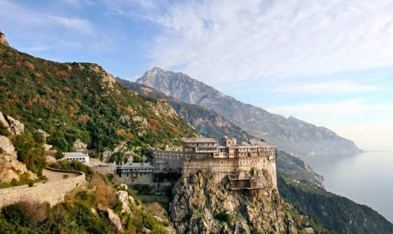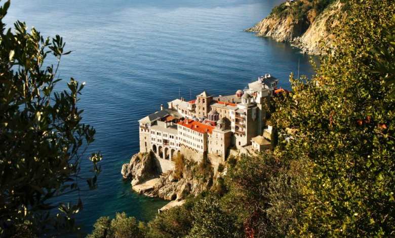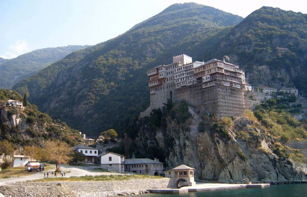 Паром из Уранополиса идет в порт Дафни. Для того чтобы посетить монастыри южной части полуострова, в Дафни нужно пересесть на другой паром. Его первая остановка – Симонопетра – удивительный по красоте монастырь, находящийся на высокой скале, с трех сторон окруженной пропастью. Он основан в 11 веке, престольный праздник здесь – Рождество Христово, а главная святыня – частица Животворящего Древа Креста Господня.