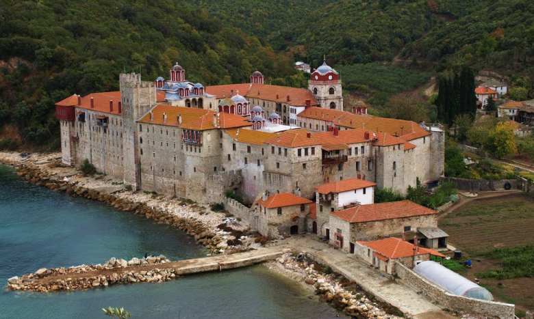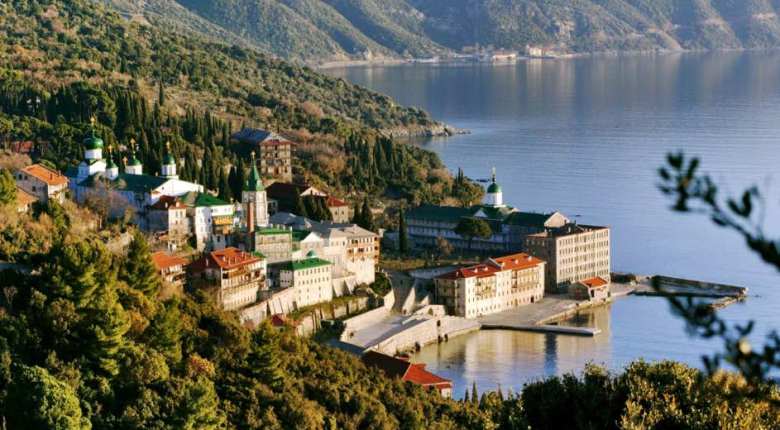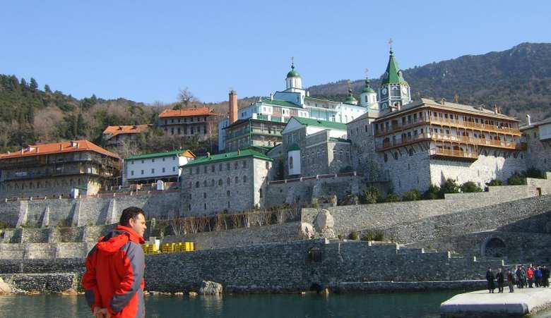 Построен русскими монахами в 18 веке. Кроме греческих и русских монахов, свои монастыри на Афоне имеют сербы и болгары. Паром, отходящий от городка Уранополис на границе со Святой Горой, делает первые две остановки у пристаней сербского монастыря Хиландар и болгарского Зограф.