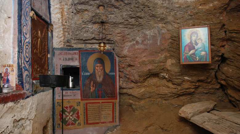 Пещера Антония Печерского. Источник: AgionOros.ruЭтот монастырь особо почитаем в Украине, т.к. связан с именем основателя Киево-Печерской лавры Антония Печерского. Уже около тысячи лет монахи бережно сохраняют пещеру, где несколько лет жил этот святой. Чем же вызвано к нему внимание греческих монахов? Для этого обратимся к повествованию Нестора летописца. Будущий основатель Киево-Печерской лавры в миру Антипа смолоду возлюбил уединённую молитвенную жизнь. Когда же он «достиг возраста, – как пишет Нестор летописец – Бог положил ему на ум желание странствовать и, странствуя, достиг он Святой Горы Афонской». Долго подвизался Антипа на Святой Горе: обошёл все монастыри, пока не остановился в Эсфигмене, где его постриг в монахи настоятель отец Феоктист.