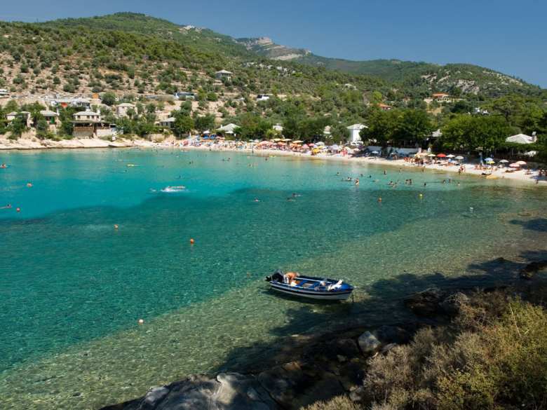 Длина береговой линии Тассоса занимает 115 км. Остров небольшой, и там действительно очень мало людей! Если то тут, то там, находишь пляжики в личное пользование — это супер, конечно же, но когда ужинаешь в таверне в гордом одиночестве – это немного перебор. Еще из плюсов — остров зеленый и гористый, красивых видов не перечесть. Ну и, как везде в Греции, – гостеприимные греки и замечательная еда.