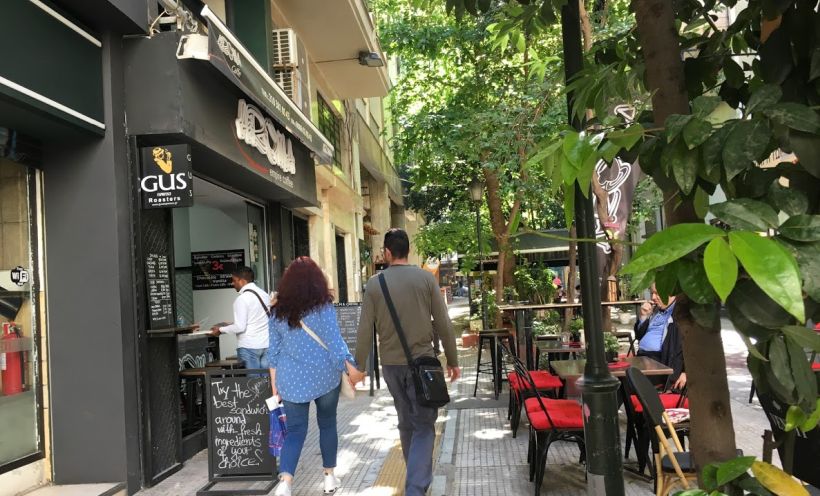 Если днем на площади жизнь кипит: снуют толпы туристов, слышны голоса торговцев, в воздухе витает запах кофе, то уже к вечеру, на дорогах уменьшается количество машин, туристы расходятся. Им на смену приходят местные наркоманы, проститутки, бездомные и представители криминального мира Афин.