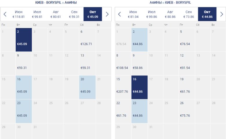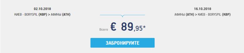 Для прикладу – можна полетіти у Афіни 2-16 жовтня за 90 євро у два боки. Чи придбати квиток у один бік за 45 євро.