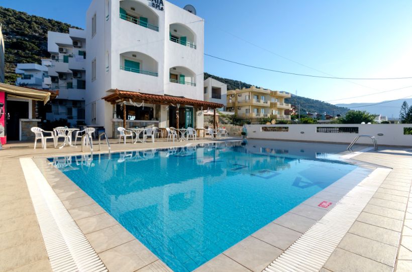 Про отель. Расположен в 6 км от курортного города Херсоносос в городке Сталис на небольшой возвышенности, построен в традиционном островном стиле. Апартаменты с кухней, великолепные виды на море и горы, зеленая территория. В легкой доступности таверна и супер-маркет.