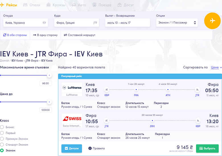 Если вы хотите лететь нон-стоп, задайте фильтр в процессе поиска и Travellizy предложит вам только прямые перелеты.