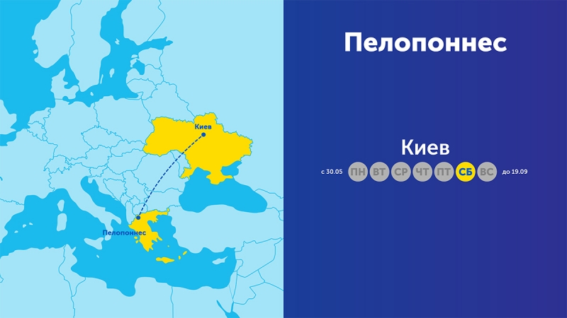 Программа на Пелопоннес – с 30 мая по 19 сентября из Киева по субботам раз в неделю.