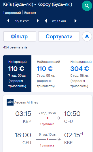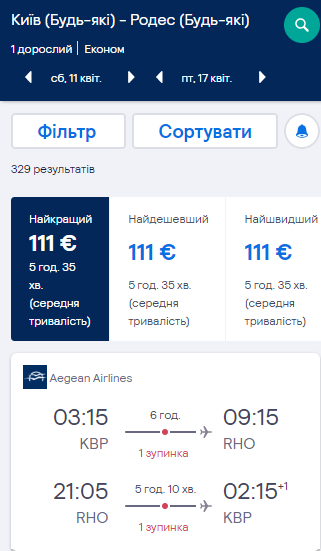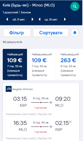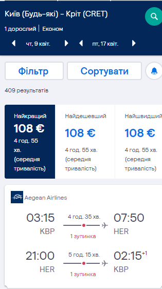 Дати: 11-17 квітня. Вартість перельотів у два боки — €110