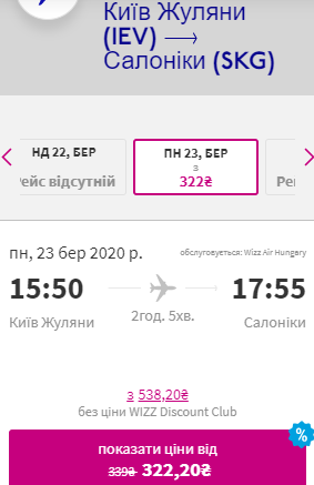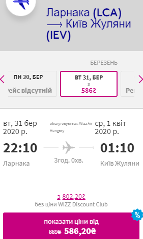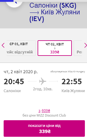 Дати: 23 березня-2 квітня. Ціна квитків у дві сторони – €24 для учасників wizz-клубу та €42 для всіх інших.