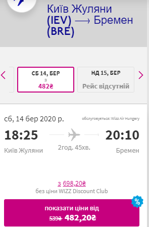 Щоб отримати найнижчу ціну на рейси Wizz Air необхідно мати викуплене членство у Wizz Discount Club, або придбати його під час бронювання.