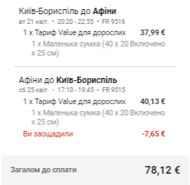У вартість квитів входить ручна поклажа розмірами до 40х25х20 см.