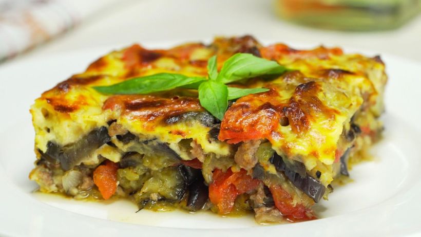 Многослойную запеканку мусаку готовят из баклажан, мясного фарша и соуса Бешамель, а сверху украшают тоненькой сырной корочкой. Запекают мусаку сразу же в тарелке, в которой и подают.