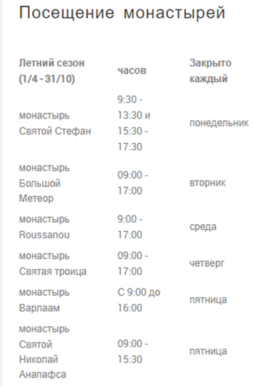 З розкладом роботи монастирів можна ознайомитися на сайті: