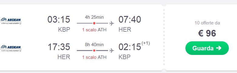 Київ – Іракліон (Крит), 28 жовтня-11 листопада – €96 в обидва боки. По дорозі пересадка в Афінах.