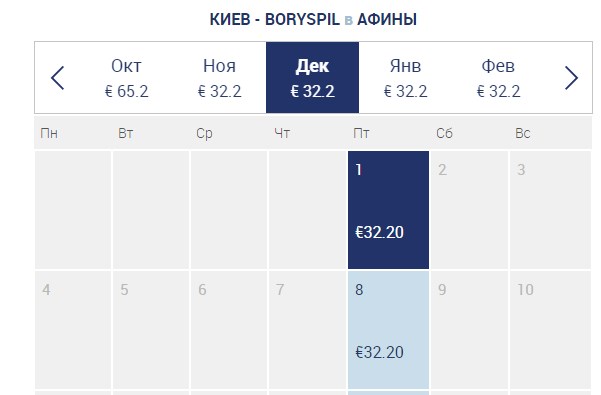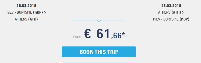 Например, Киев – Афины, 16-23 марта 2018 года – 62 евро в две стороны.