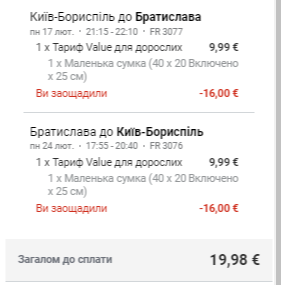 Київ — Братислава. Дати: 17-24 лютого. Вартість квитків у два боки — €20