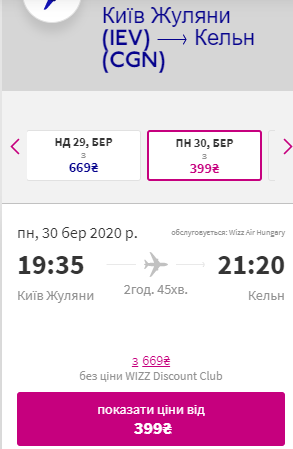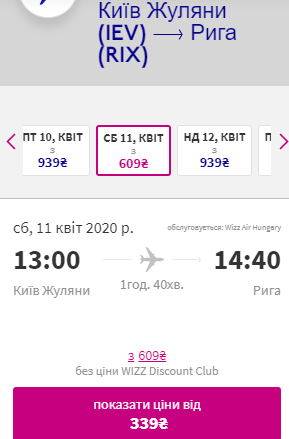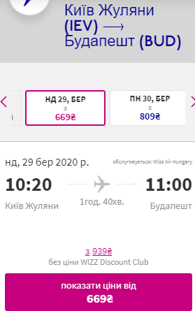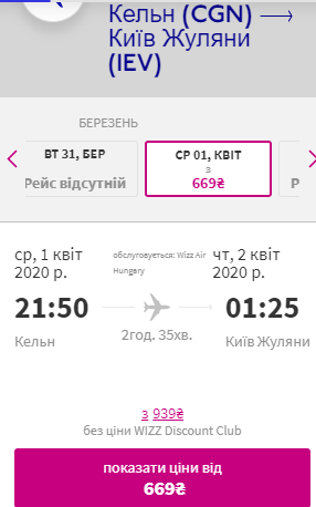 Дати: 30 березня-1 квітня. Вартість квитків у два боки — €39 для учасників wizz-клубу та €59 для всіх.
