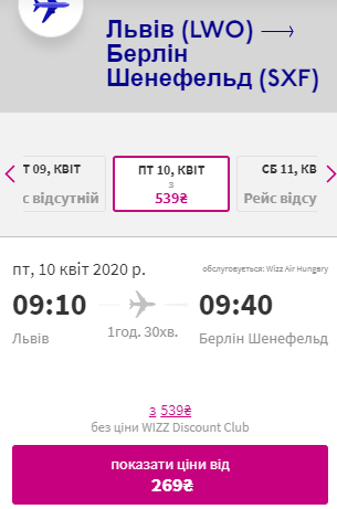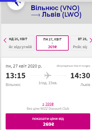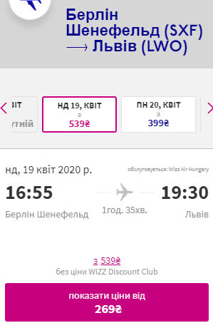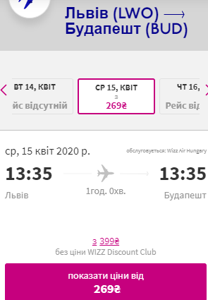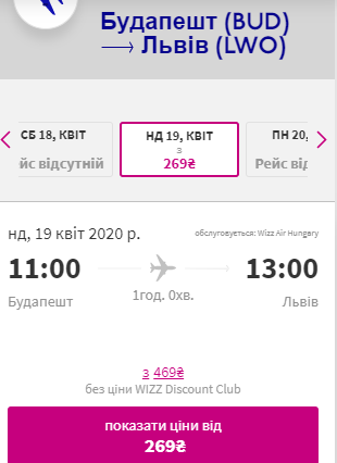 Дати: 10-19 квітня. Ціна квитків у дві сторони – €19 для учасників wizz-клубу та €38 для всіх
