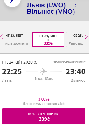 Дати: 15-19 квітня. Ціна квитків у два боки – €19 для учасників wizz-клубу та €30 для всіх
