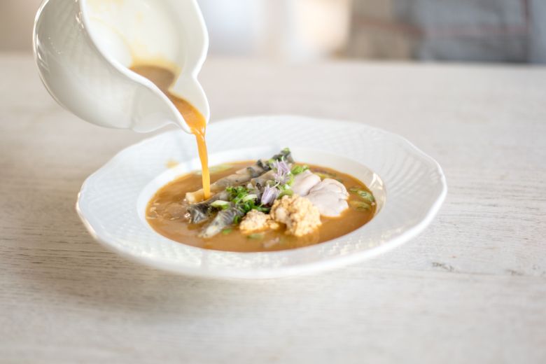 У Malackrumpli поросячу картоплю не впізнаєш: вишукано і… все одно смачно. Та почнемо з риби, а саме юшки. Угорська юшка називається халасле, і вона геть не схожа на нашу. Червона від добрячої дози паприки, навариста. Густа, бо зварену рибу перетирають, а ще додають ікру й молоки. Надзвичайно ароматна й смачна. Якщо ви в Угорщині, це такий же must, як і гуляш. Порція халасле у Malackrumpli коштує 10 євро, але її можна розділити на двох. До того взяти бургер із місцевої свинини породи мангаліца. І, звичайно, вино.