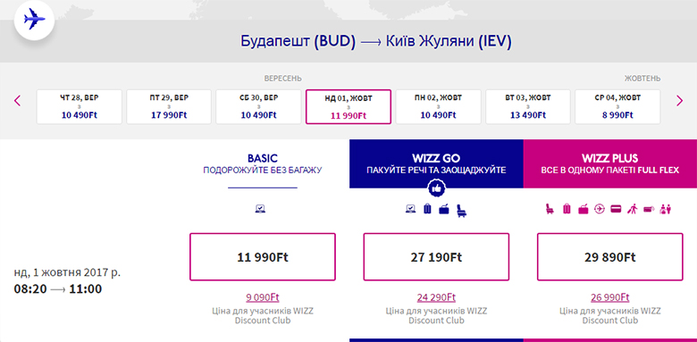 І додому: Будапешт – Київ – €32 (для членів wizz-клубу) 1 жовтня.