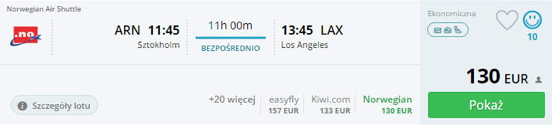 Рейс – Стокгольм – Лос-Анджелес. Дата – 7 вересня. Ціна – €130.
