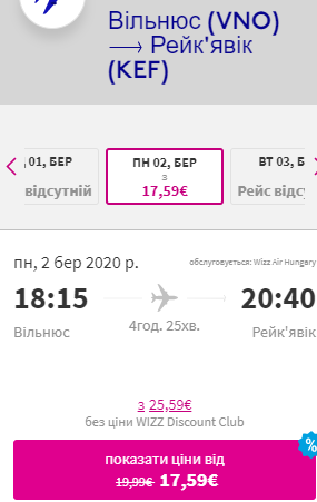 Щоб отримати найнижчу ціну необхідно мати викуплене членство у Wizz Discount Club або придбати його під час бронювання квитків.