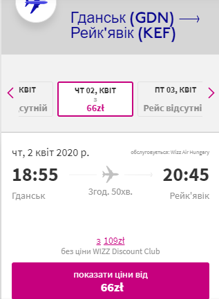 Завдяки стикувальним рейсам лоукост-авіакомпанії Wizz Air можна недорого злітати у квітні зі Львова до столиці Ісландії.
