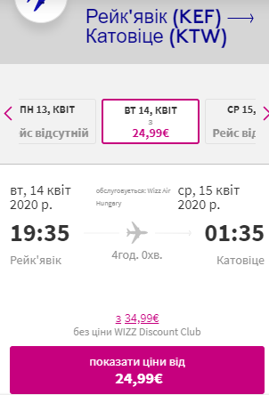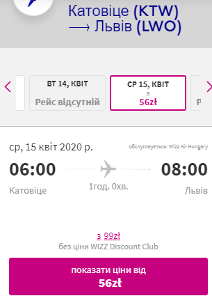 Вартість усіх квитків у два боки — €63 для учасників wizz-клубу та €94 для всіх інших.