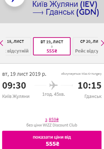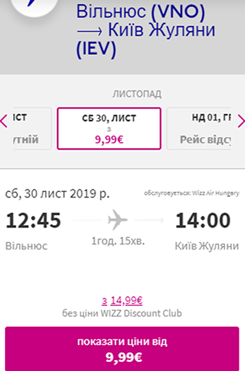 Дата – 29 листопада. Ціна – €30 для учасників wizz-клубу €40 для всіх інших.