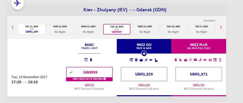 Ціни наведені для учасників Wizz club. Варто також пам’ятати, що Wizzair безкоштовно перевозить лише ручний багаж.