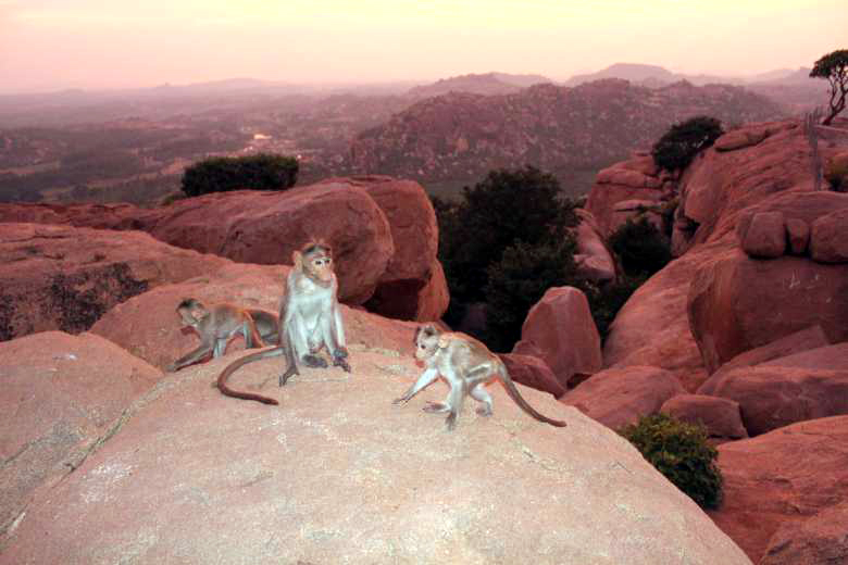 На подъезде к Хампи бросается в глаза удивительный ландшафт. Холмы покрыты гигантскими круглыми валунами. Почему они такие мягкие, будто их веками омывал океан, никто не знает.