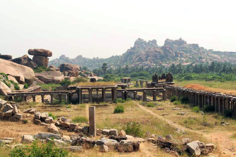 Город Виджаянагар был основан в 1336 г., в очень подходящем месте: с одной стороны – река Тунгабхадра, а с трех других – валуны, используемые в древности виджаянагарскими мастерами для изваяния индуистских божеств. Империя была больше и богаче, чем Древний Рим. На базарах столицы торговали алмазами в килограммах, шелками в тоннах, ее дворцы были обиты чистым золотом, храмы проводили шумные праздники. Все это ушло в небытие одночасье, когда после поражения при Таликоте империя рухнула, а захватчики полгода грабили самый богатый город Индии.