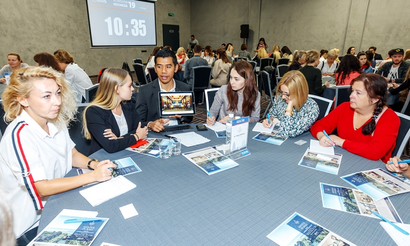 Во время воркшопа можно было поближе познакомиться с балийскими гостиницами. Восемь представителей балийских отелей приехали в Киев – Karma Resorts, Ayodya Resort Bali, Melia Bali, The Apurva Kempinski Bali, Movenpick Resort & Spa Jimbaran Bali, Sofitel Bali Nusa Dua Beach Resort, The Westin Resort Nusa Dua Bali, The Mulia, Mulia Resort & Villas, Nusa Dua – Bali.