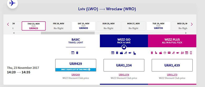 Отож, Львів – Вроцлав, 23 листопада – €9 для членів Wizz club.