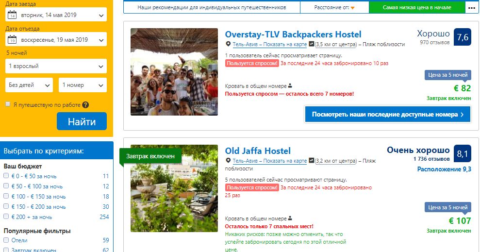 Проживание в Тель-Авиве 14-19 мая – от 82 евро за 5 ночей