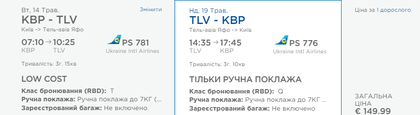 МАУ: Киев-Тель-Авив 14-19 мая- 150 евро
