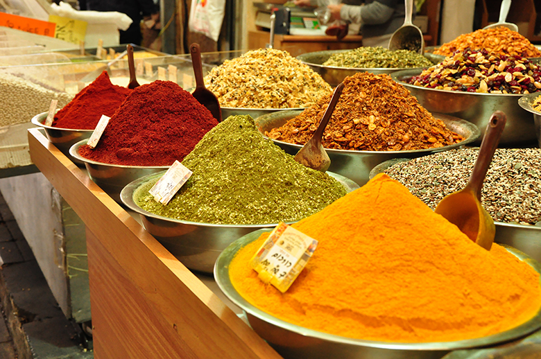 Особая тема для иерусалимского рынка – пряности. Какая без них восточная кухня? Вот и тут витают ароматы, от которых слюнки текут: шафран и перец, ваниль бурбон и цейлонская корица, зира и чабер. Но особенно в чести заатар – здешняя смесь из пряных трав и кунжута. Хороший сувенир, ароматный и полезный для желудка!
