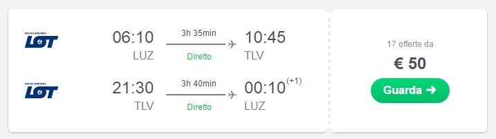 10-16 июля а/к LOT доставляет пассажиров в Израиль за 50 евро. Перелет-прямой.