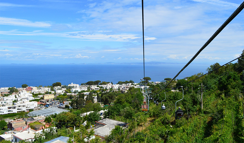 Самая высокая точка острова – Монте Соларо высотой 589 м на которую можно подняться по канатной дороге из города Анакапри, либо для очень выносливых – пешком по тропинке. Стоимость подъема – 11 евро в обе стороны или же 8 евро в одну. За 13 минут подъема на одноместных сиденьях можно вдоволь налюбоваться домиками, утопающими в лимонных деревьях, огородиками, а также островом Искья в случае солнечной погоды.