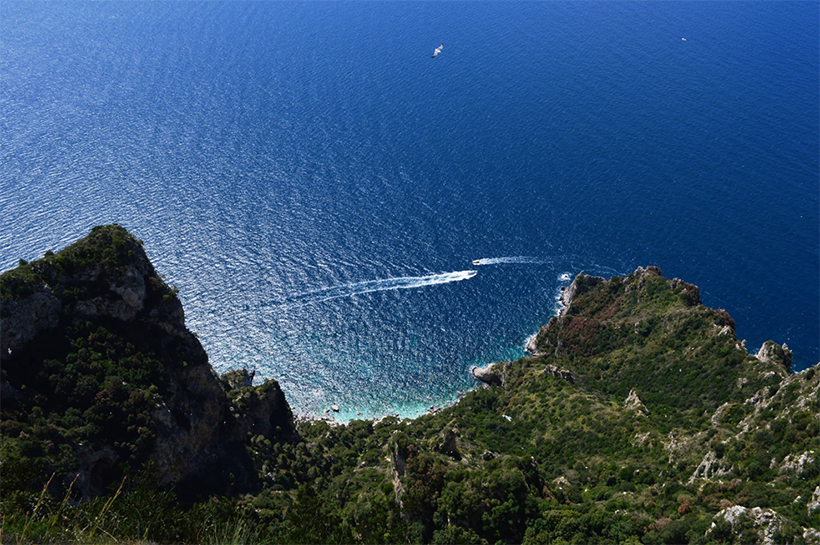 С вершины открывается вид на оба города Капри и Анакапри, а также на соединяющую их Финикийскую дорогу.