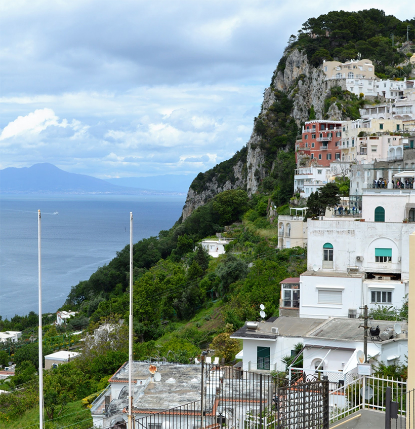 Спустившись вниз в город Капри стоит пройтись по основной пешеходной улице к Финикийской лестнице, которую по легенде построили финикийцы еще до нашей эры. Смотровая площадка представит взору, наверное самый захватывающий вид на порт, Неаполитанское побережье, город Сорренто и Везувий.