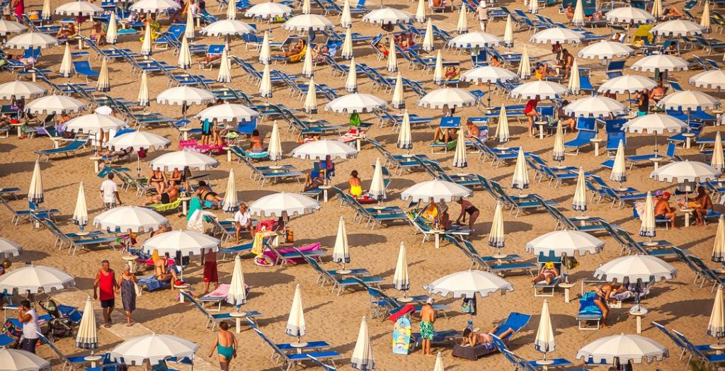 Римини – популярнейший курорт Адриатики, состоящий из 20 км песчаных пляжей. Пляжи поделены на участки и пронумерованы, каждый имеет свою расцветку и форму зонтиков. Они расставлены ровными рядами довольно плотно и ими занята практически вся пляжная полоса! По всей длине пляжей в 50 м от берега расположены волнорезы, насыпь из крупных камней. Глубина моря небольшая. Между шезлонгами сооружены удобные настилы. Туалеты, души, кабинки для переодевания и камеры для хранения мелких вещей, спасательные вышки и медицинские пункты, небольшие детские и спортивные площадки- это минимальный набор удобств, присутствующих на всех пляжах. На большинстве из них есть зоны для отдыха с домашними животных, кафе, пляжные бары. В качестве бонуса на некоторых пляжах есть бесплатный Wi-Fі.